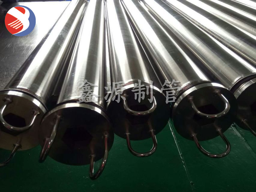 楔形絲濾管,也叫縫隙管、T型絲濾管、全繞焊絲管或約翰遜管由高精密度表絲螺旋形纏繞在軸向支撐筋上,支撐筋和表層絲以電阻焊的方法彼此牢固焊接成一體。這些過濾元件有高精度的特點,縫隙開孔極小并有極佳的圓度??p隙管可以加裝必須的端蓋、法蘭、絲扣等連接件和加強件。