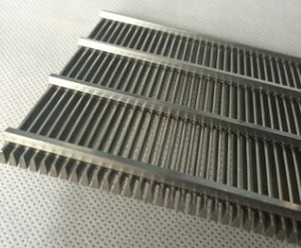 楔形篩片、楔形濾網(wǎng)特點:易滲漏、耐磨、耐腐蝕。網(wǎng)絲斷面為梯形。縫隙上窄下寬。是由不銹鋼絲冷軋而成的篩條,支撐條采用自動化礦篩網(wǎng)上產(chǎn)設(shè)備焊接而成,篩縫均勻,焊接質(zhì)量穩(wěn)定,開孔率高,使用壽命長,有很高的強度,剛度和承載能力,可以做成各種形狀的剛性篩分過濾裝置。