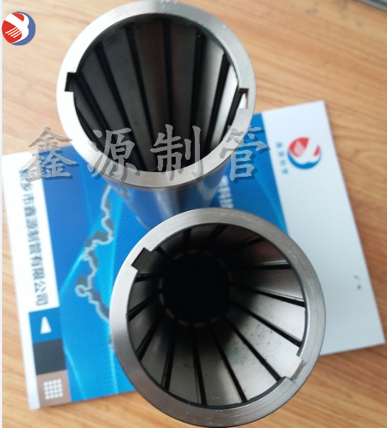 楔形絲濾管,也叫縫隙管、T型絲濾管、全繞焊絲管或約翰遜管由高精密度表絲螺旋形纏繞在軸向支撐筋上,支撐筋和表層絲以電阻焊的方法彼此牢固焊接成一體。這些過濾元件有高精度的特點(diǎn),縫隙開孔極小并有極佳的圓度。縫隙管可以加裝必須的端蓋、法蘭、絲扣等連接件和加強(qiáng)件。
